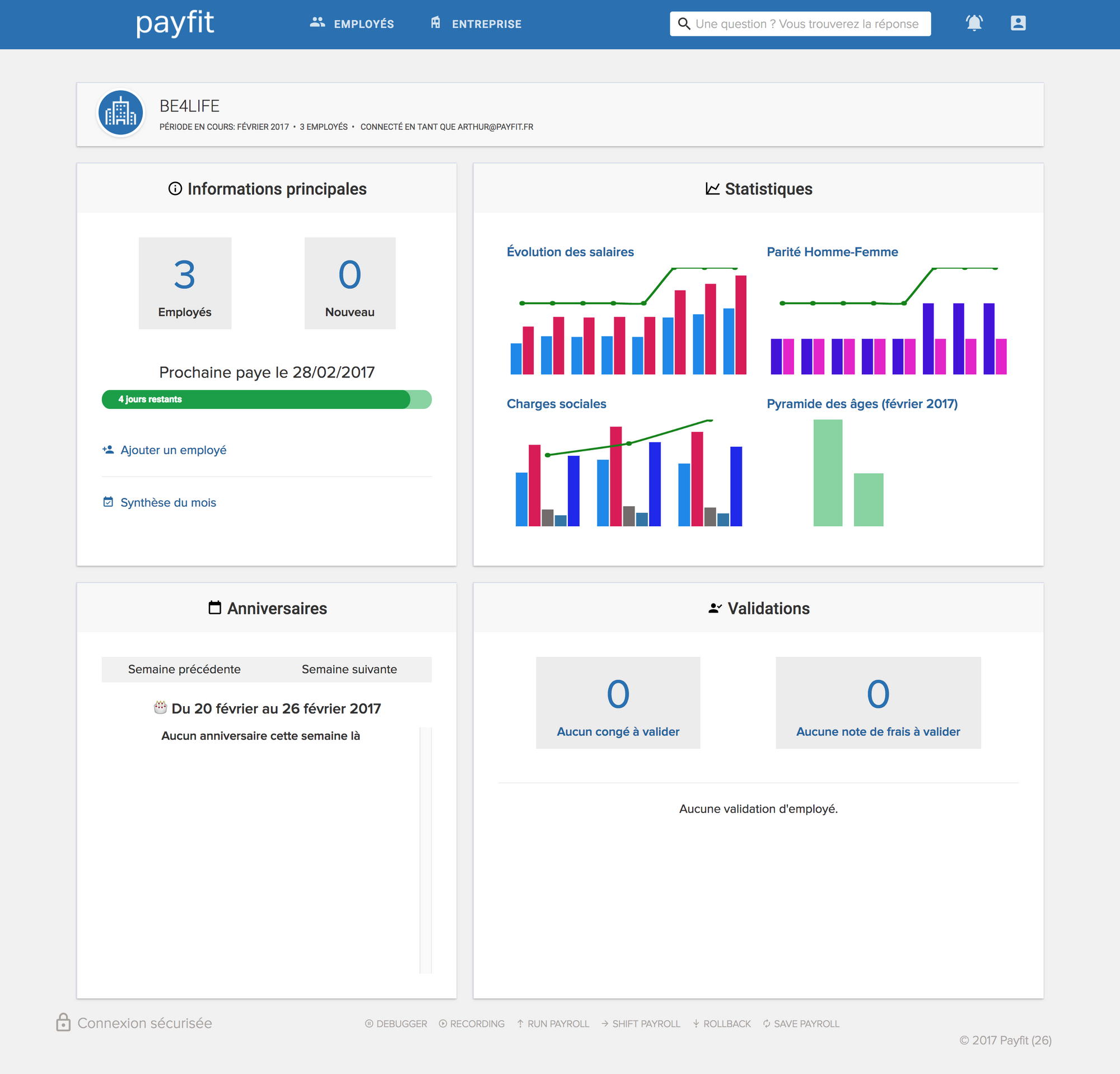 It became easier to maintain both parts, with a team dedicated on Payroll, another on the PayFit application. The Payroll solution, developed by a dedicated team was then integrated into the PayFit application, along HR features.